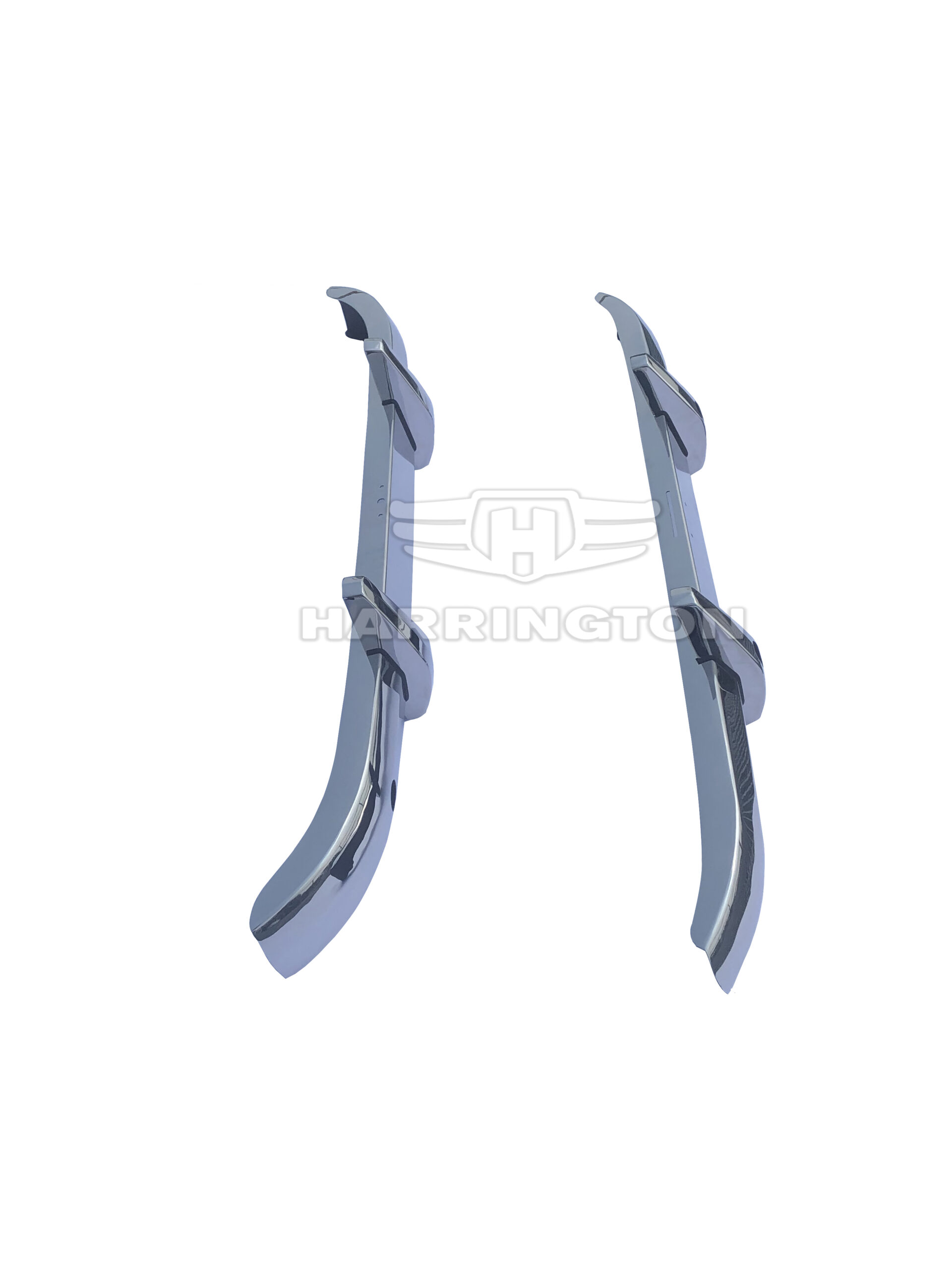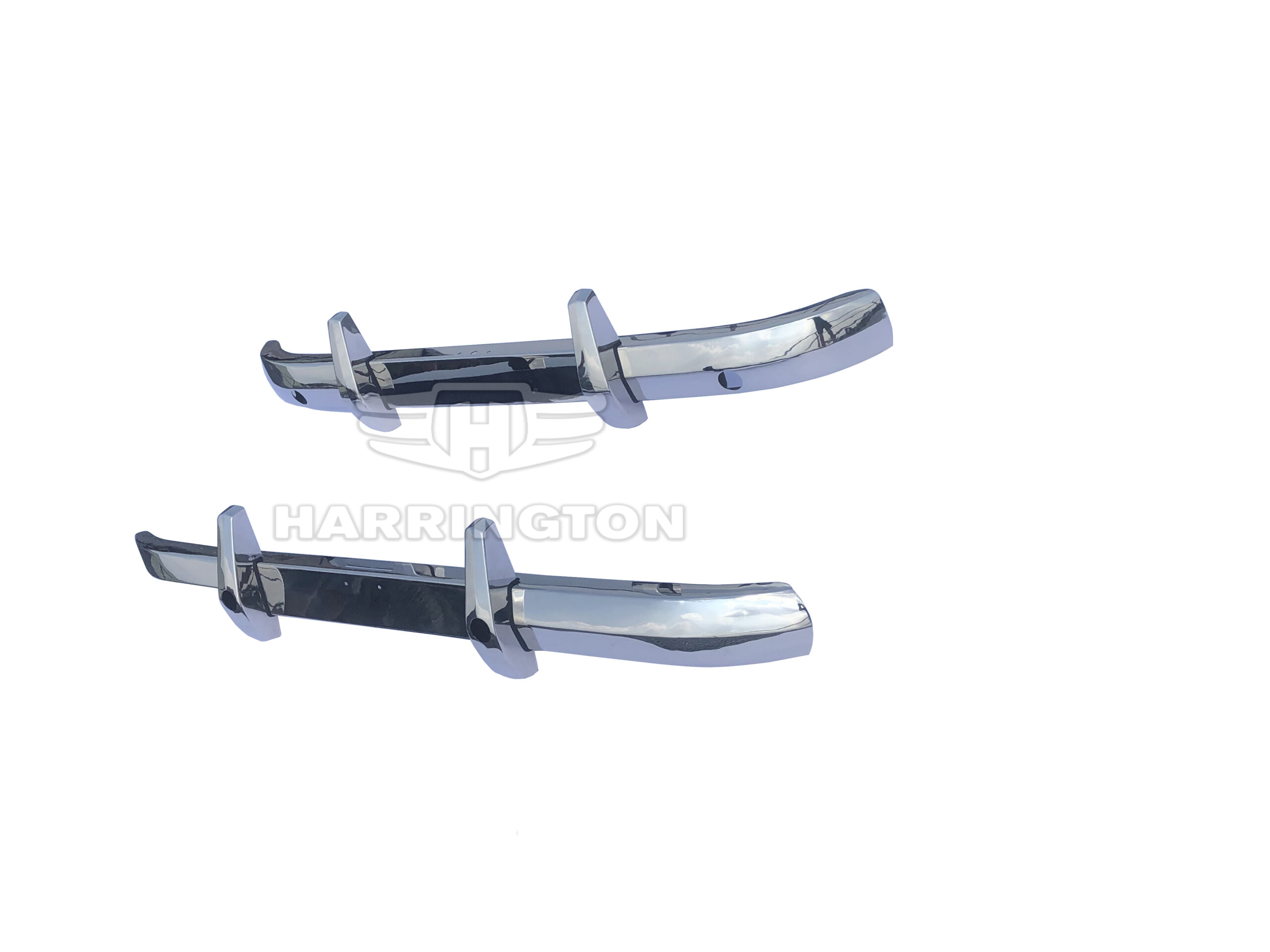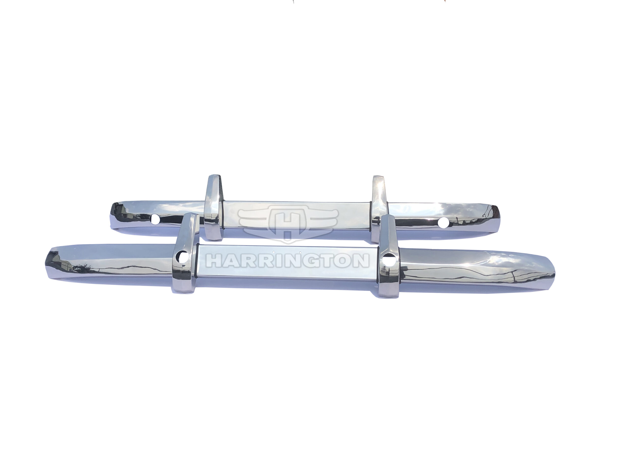 Brand new stainless steel bumpers for Alvis TC21 (1953-1955). Kit consists of 1 front bumper, 1 rear bumper and 4 over-riders.