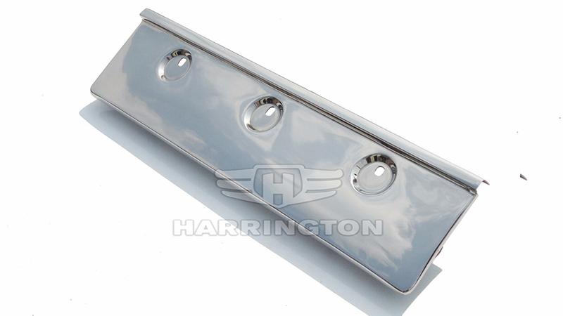 Brand new stainless steel front number plate holder for Bentley R Type (1952-1955). Set consists of 1 number plate holder.