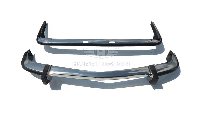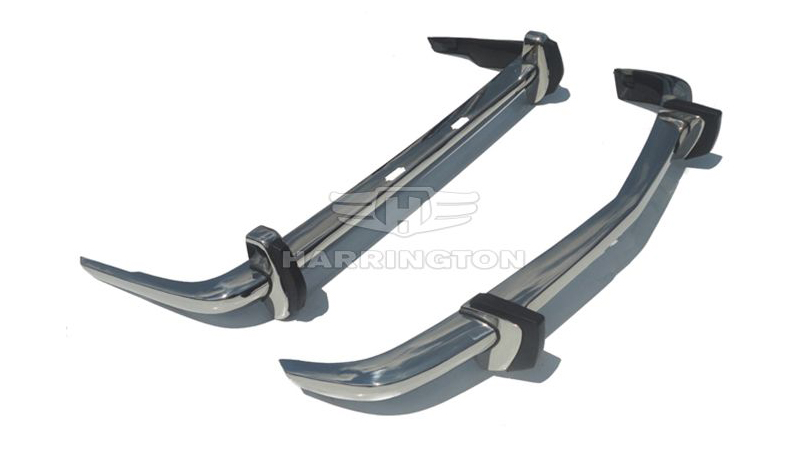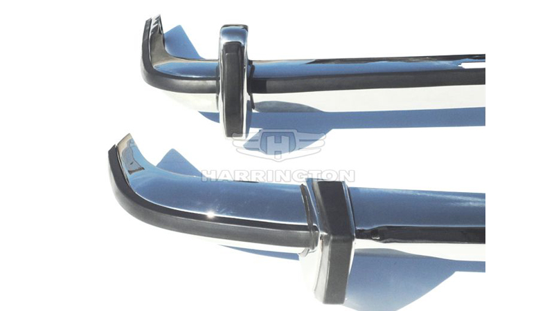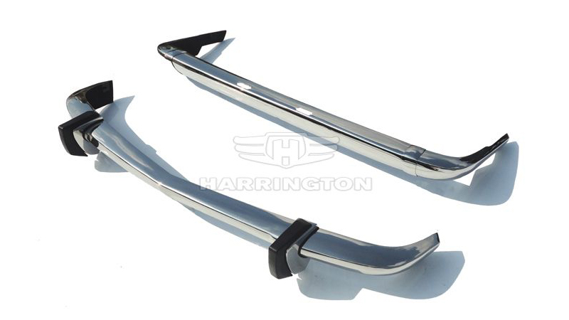 Brand new stainless steel bumpers for BMW 1502/1602/1802/2002 (1971-1976). Kit consists of front bumper in 3 parts plus 2x rubber trims, 2x front over-riders with rubber inserts, rear bumper in 3 parts plus rubber trim, and either 2 rear joining strips or rear over-riders. Two over-riders cost GBP 80 extra. Our kit also includes a mounting set. Please note that our bumpers fit the 2nd and 3rd generation of BMW 1502/1602/1802/2002’s from 1971-76. They are NOT correct for the 1st generation from 1968-71. Also, these bumpers DO NOT fit the BMW 2002 Turbo. We supply two types of rear bumpers: one type for Coupe (Saloon)/Convertible models and one type for the Touring model. Both types can be supplied with or without cut outs for the license plate lights. The front bumper is the same for both models. Please specify which type you require when ordering. Our bumpers come with rubber trims as original, hence the bumpers come with holes. If you want your bumpers WITHOUT rubbers and holes, please inform us at the time of purchase!