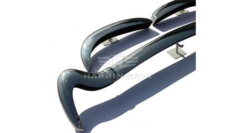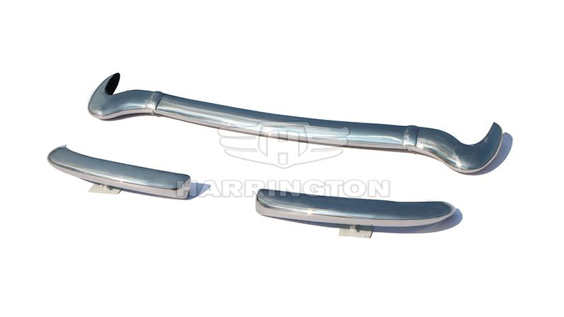Brand new stainless steel bumpers for DKW 1000SP (1957-1965). Kit consists of 2 front bumpers, 1 rear bumper in 3 parts and 2 cover buckles. We also sell the bumper mounting brackets for additional GBP 40. If you are interested please let us know.