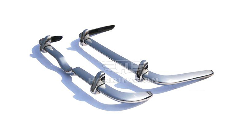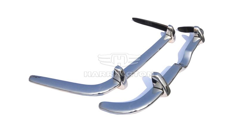 Brand new stainless steel bumpers for Jaguar S-Type (1963-68). Kit consists of 1 front bumper, 1 rear bumper and 4 over-riders.